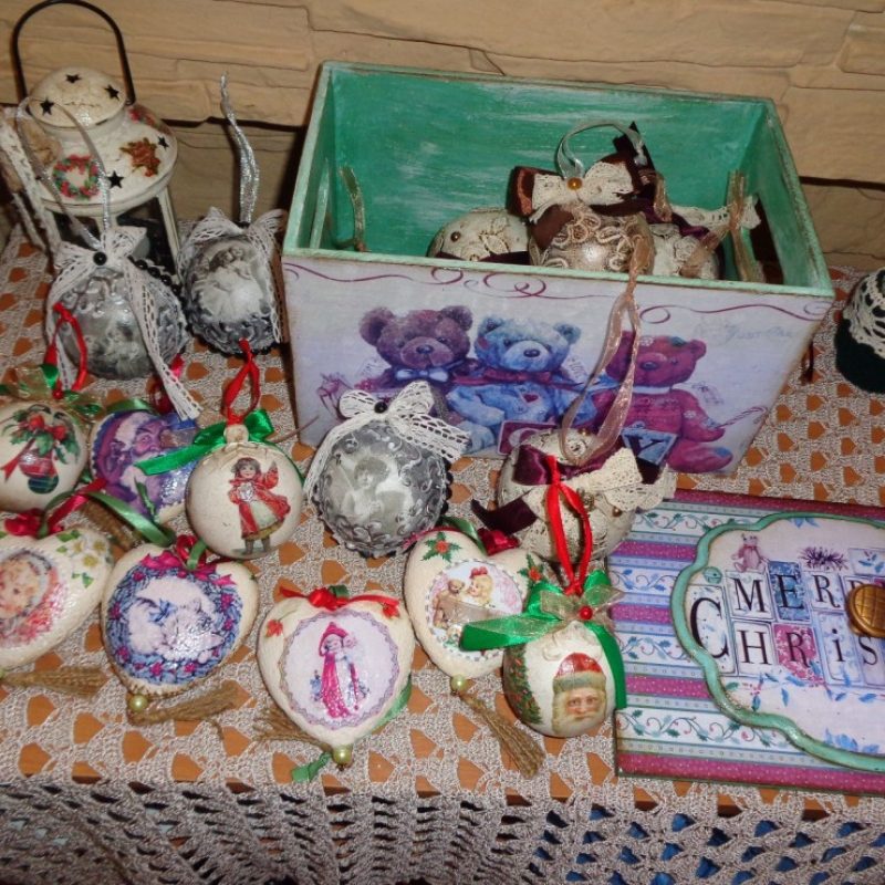А есть люди, которые для хранения елочных украшений делают потрясающие ящики, коробки, чемоданы и т.п. Это могут быть простые коробки для простых пластиковых игрушек, коробки с отделениями для стеклянных шаров, даже шкатулки для особо ценных экземпляров, например, для шаров от Федоскино или Гжели или игрушек hand made.